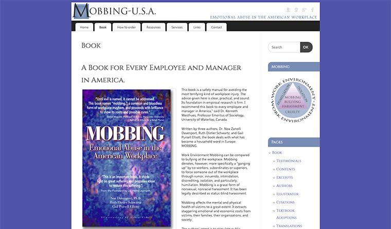Mobbing USA zurück Website Besuchen Responsive WordPress Website Logo Design E-Commerce Digital Downloads Illustrationen Mobbing Buch What a pleasure to work with Textweaver! Noa Zanolli Co-Author